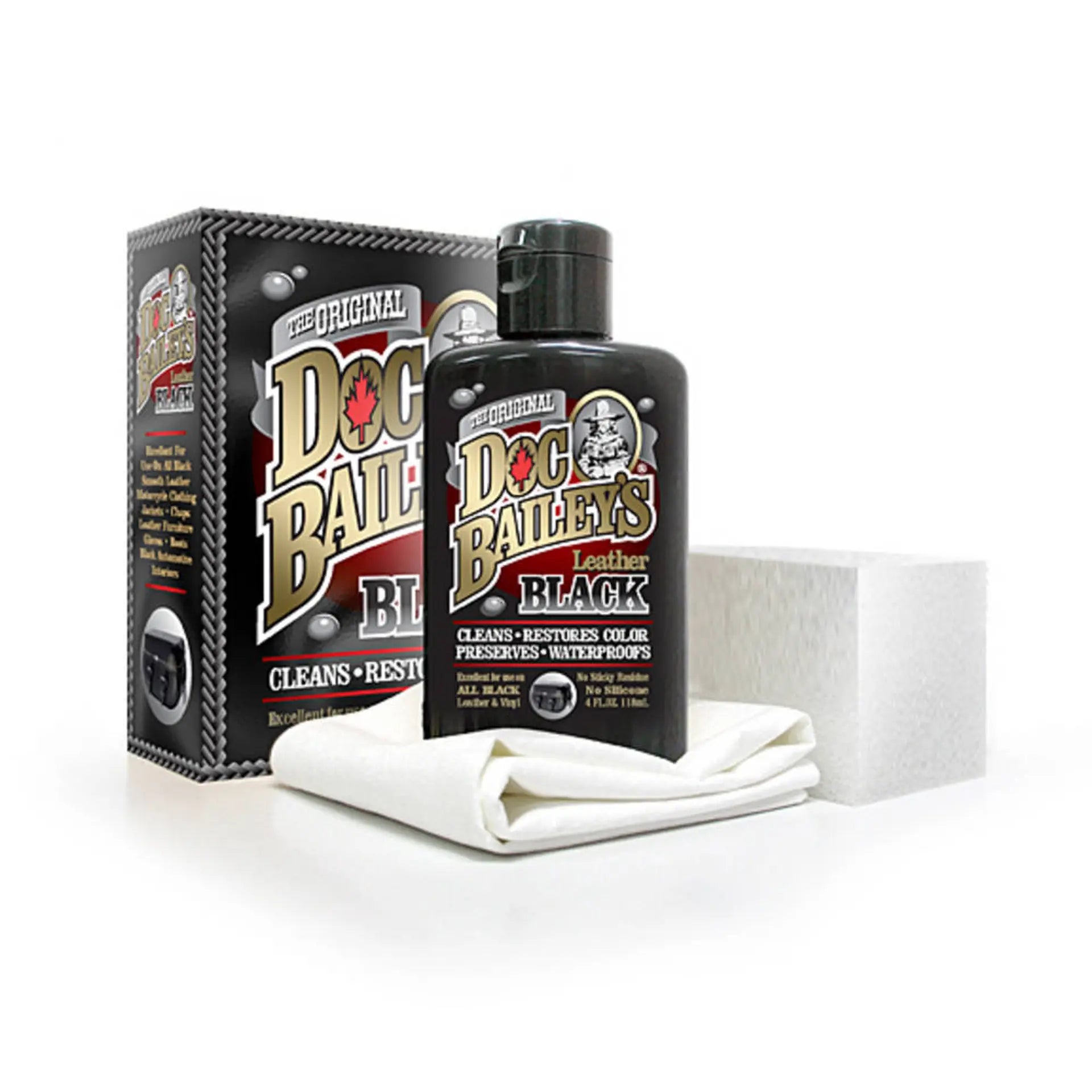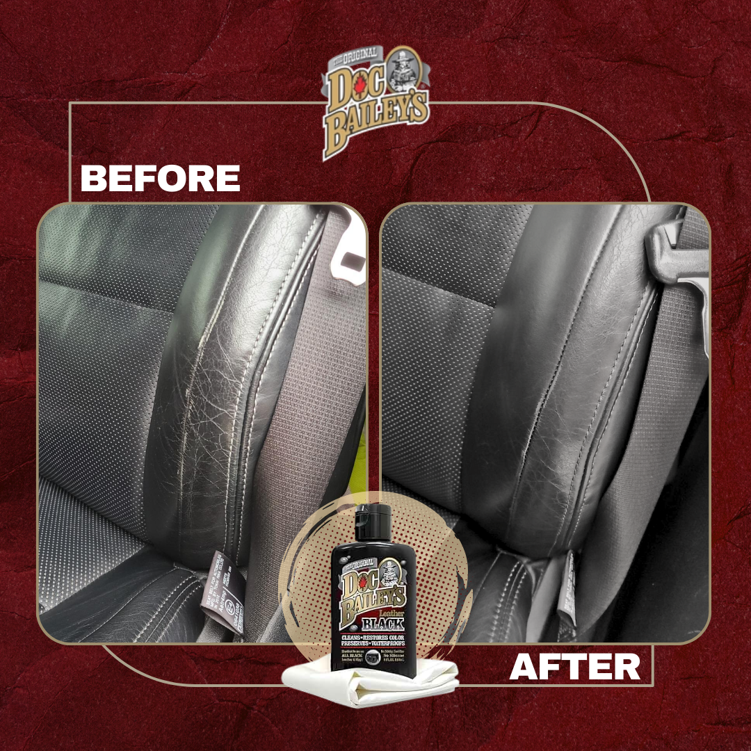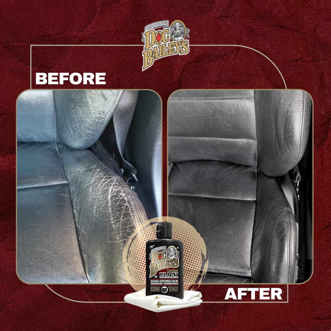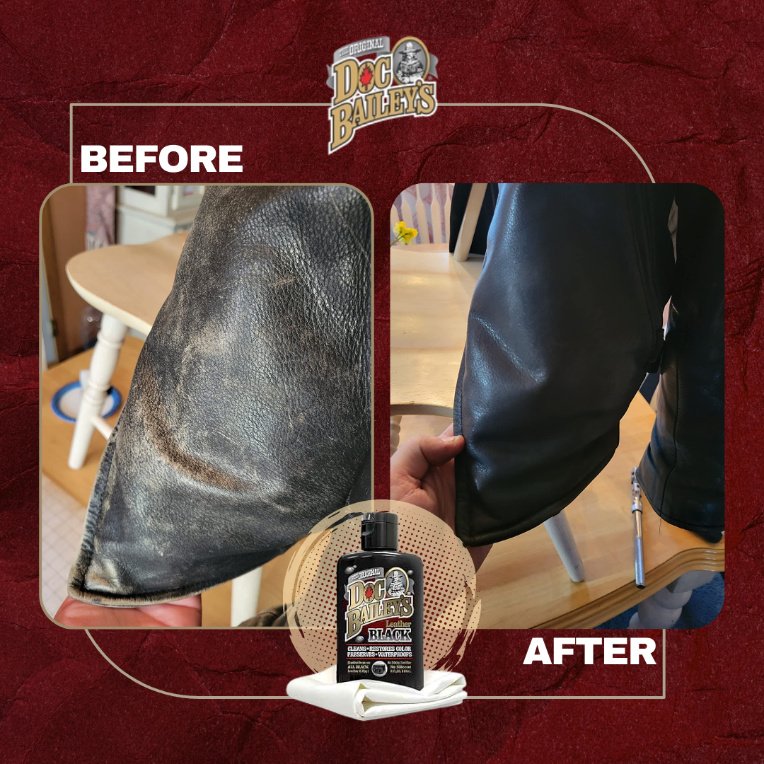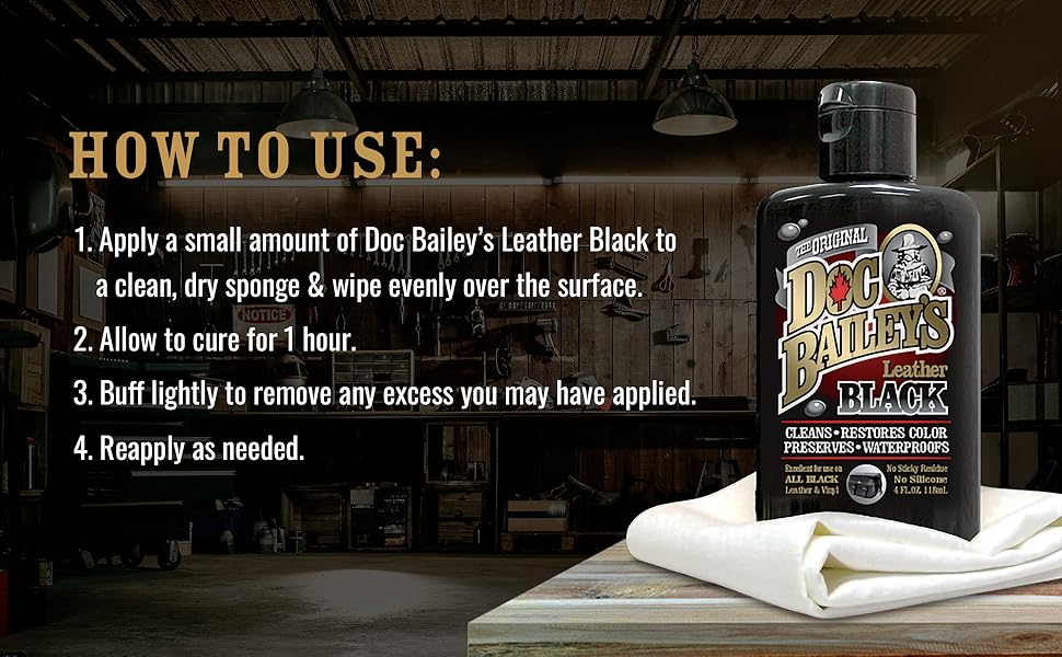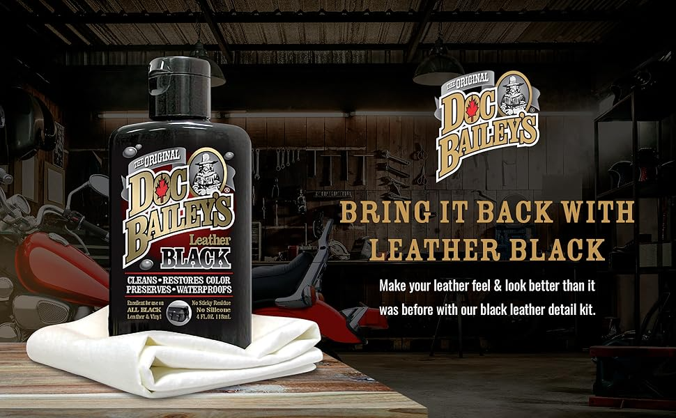 Maintain leather goods with Doc Bailey's Black Leather Care. Our all-in-one formula replaces 4 products: cleaner, conditioner, recolor, and waterproofer. Why buy multiple products when Doc Bailey's covers it all in one easy step.